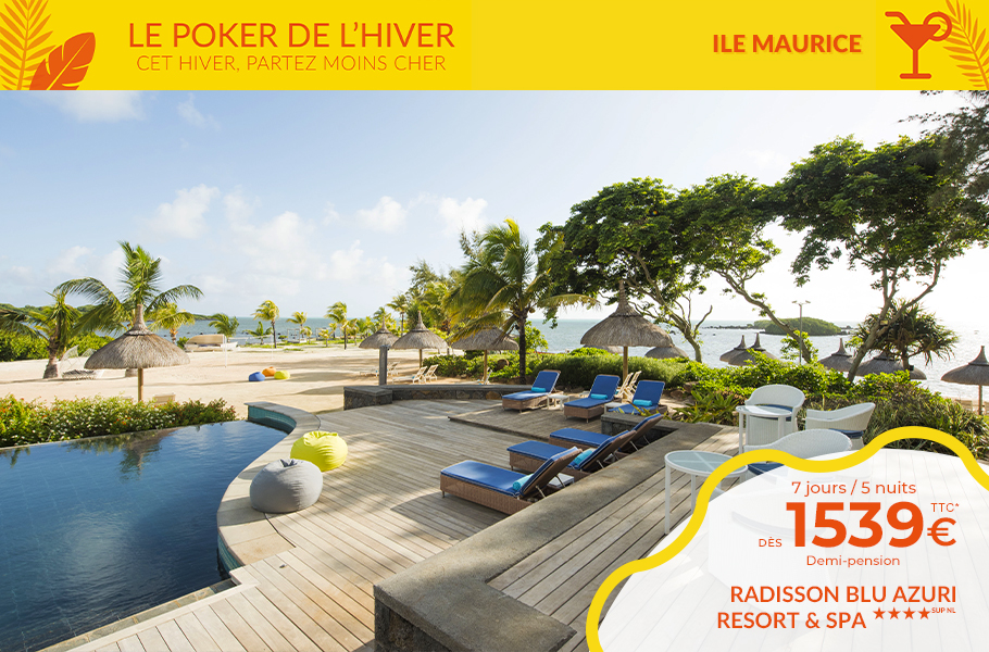 Tahiti & ses îles dans le Pacifique. La Guadeloupe, Martinique, République Dominicaine et St Barth, le Mexique avec Cancun & la Riviera Maya dans les Caraïbes, la Jamaïque et Sainte-Lucie. L’Ile Maurice, la Réunion, les Seychelles, les Maldives, le Sri Lanka, Dubaï dans l'Océan Indien, sans oublier une halte à Zanzibar. Découvrez les plus grandes chaînes hôtelières dont Sandals, Palladium, Bahia Principe...