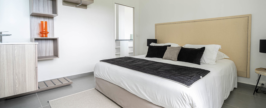 HORIZON D’OR (49m2) : Capacité 2 pax équipée d’1 chambre, 1 salle de bain, 1 séjour, coin cuisine, terrasse