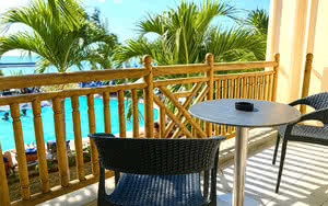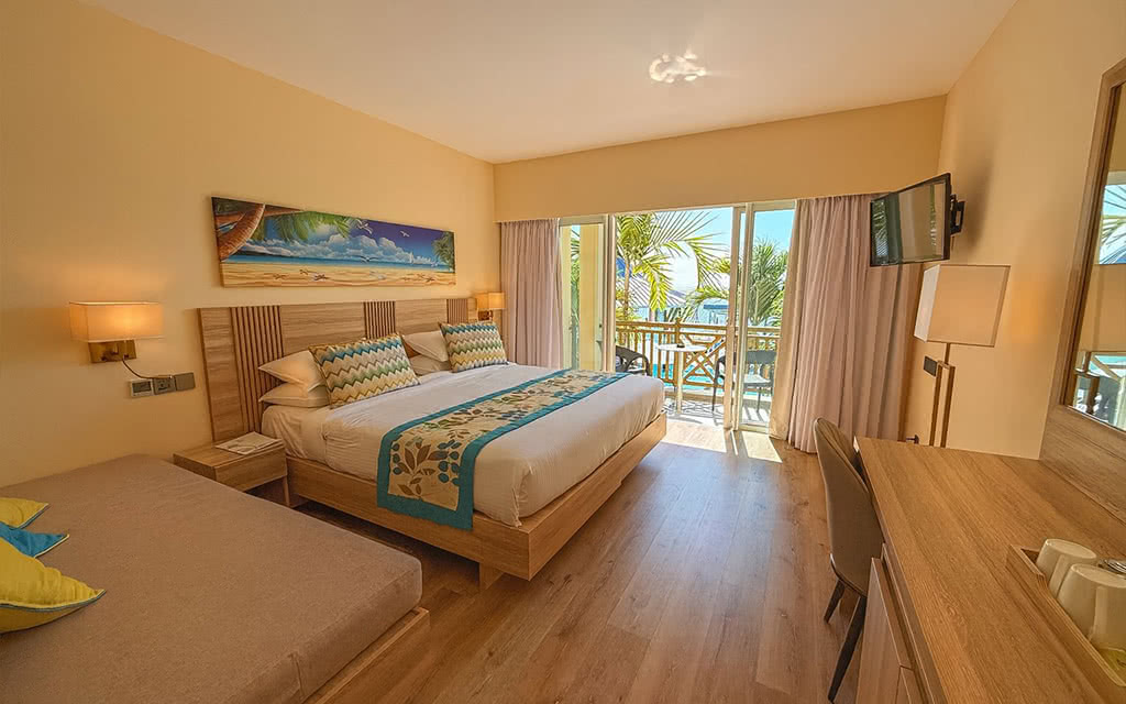 30 chambres Deluxe Supérieure avec vue sur le lagon et le jardin tropical, au premier plan.